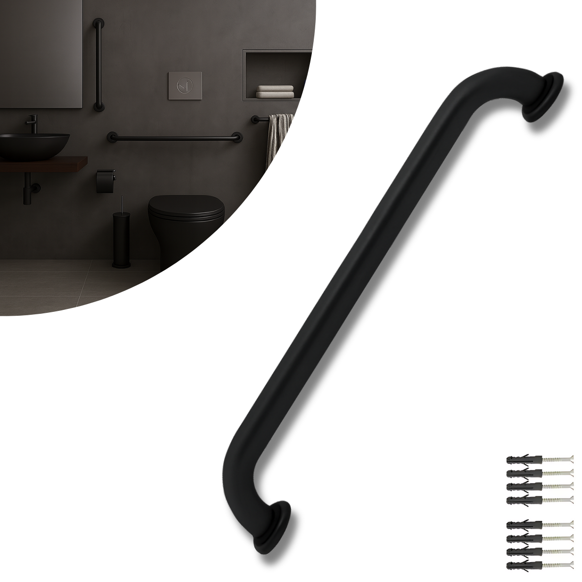 Atende à norma NBR9050:2015, sendo ideal para idosos e pessoas com deficiência. A instalação é fácil e segura com 6 parafusos e buchas inclusos. Acompanha canoplas de inox, que escondem os parafusos e dão um acabamento limpo e sofisticado.