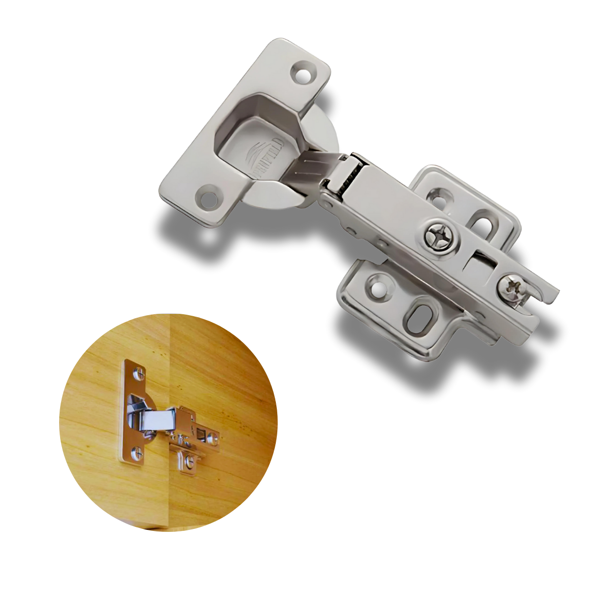 Montagem rápida com ajuste integrado para recobrimento e profundidade da porta