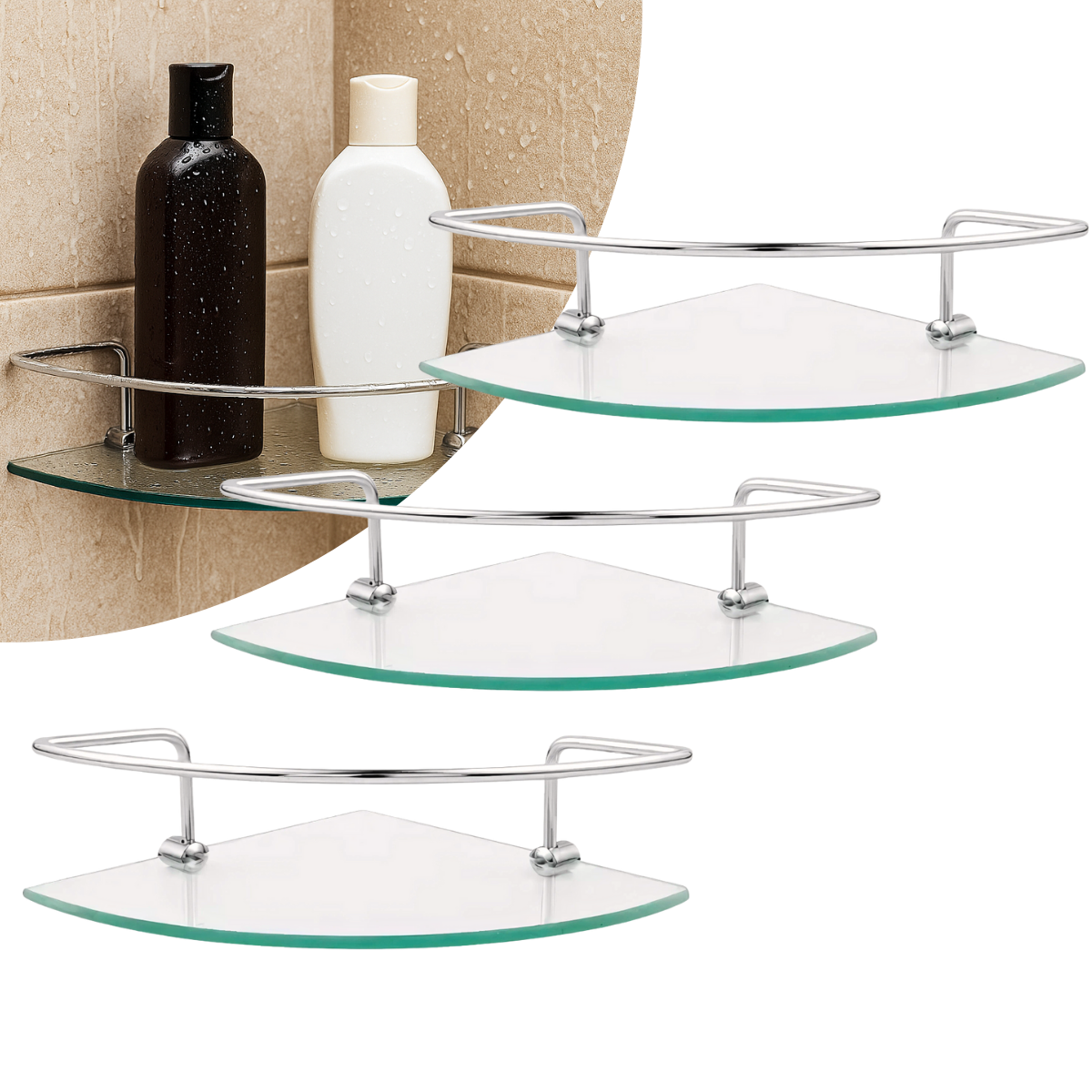 Fabricado com base em vidro temperado incolor de 6 mm de espessura e estrutura em alumínio cromado com acabamento de auto brilho, proporciona resistência, durabilidade e um visual refinado. Seu formato de canto é ideal para otimizar o espaço no box, acomodando shampoos, condicionadores e outros produtos de higiene pessoal.