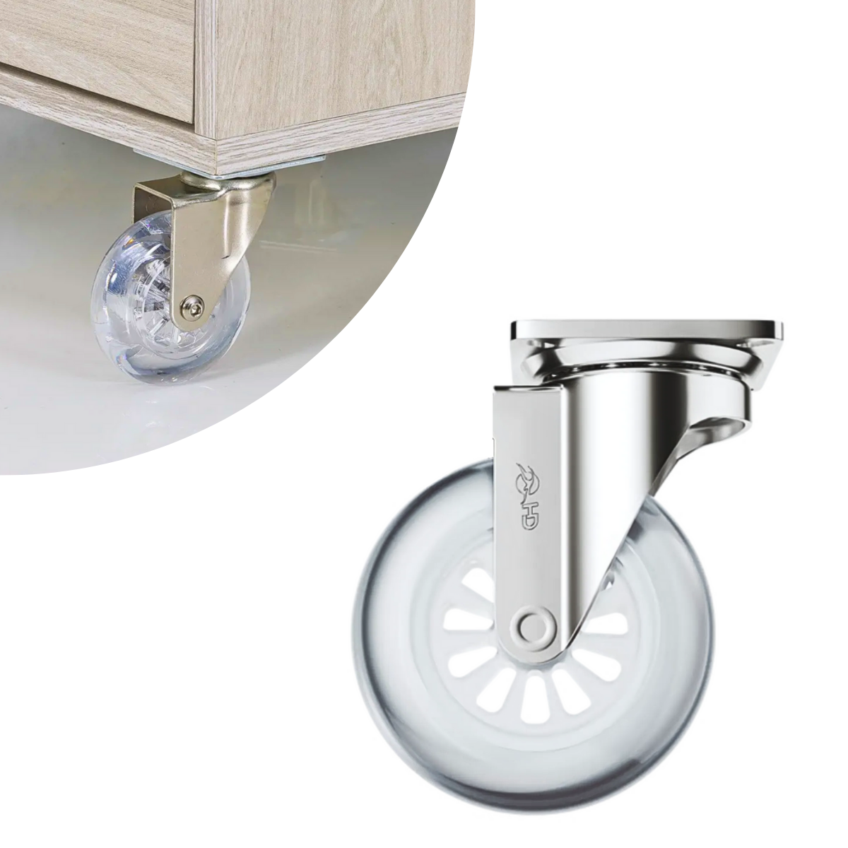 Movimentação suave e silenciosa, perfeita para quem busca praticidade sem abrir mão da estabilidade e durabilidade. Estrutura em aço reforçado e roda de poliuretano transparente (incolor) garantem resistência e menor desgaste com o uso.